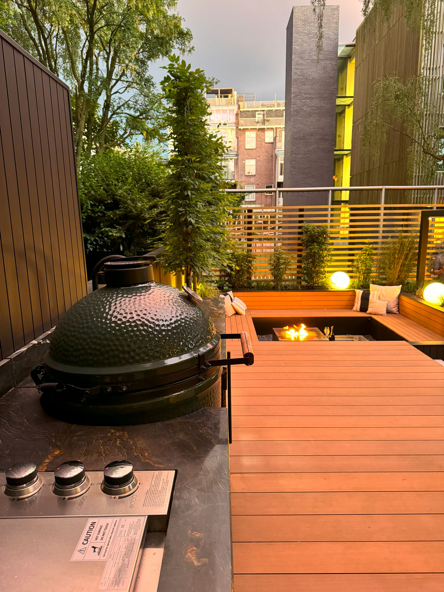 Deze deftige buitenkeuken werd speciaal voor deze high-end stadstuin ontworpen, een unieke combinatie van functionaliteit, allure en esthetiek.