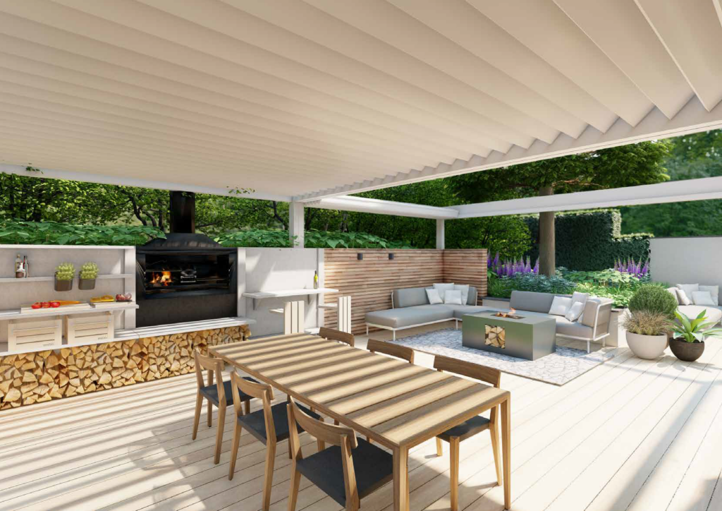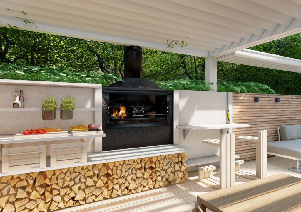 In dit project koos de klant voor een tijdloze robuuste WWOO buitenkeuken. Het merk WWOO is een creatie van de Nederlandse ontwerper Piet-Jan van den Kommer maar wordt inmiddels wereldwijd geleverd. De modulaire betonnen WWOO buitenkeuken is een merk buitenkeuken, ook onderhoudsarm, die wij kunnen leveren. In dit project zie je de uitvoering met stoere pizza-oven in deze prachtige buitenkamer met lamellenoverkapping. De keuken is gestyled met producten en accessoires van WWOO zoals het houtkrat en de barkrukken.